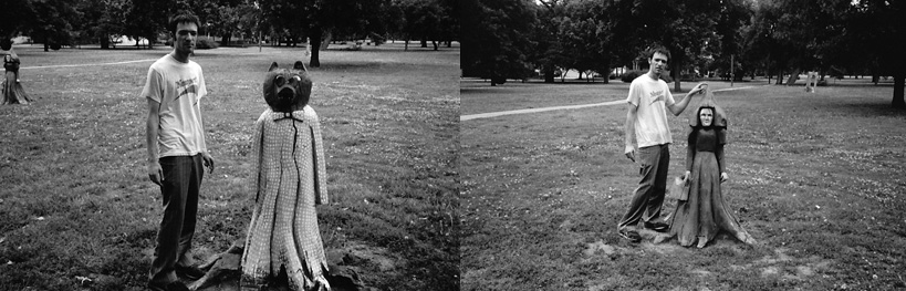 C - we arrived in Wichita, Kansas early in the morning. i was asleep. Matt woke me up and we drove to some Native American museum but it cost $2, out of our budget. so me & Matt sat around by the river while Zeph and Roman slept in the van. we drove to another park and pretty much spent the rest of the afternoon hanging out at the park. we went to a Chinese restaurant in downtown. Matt and Zeph had the buffet and i ordered shrimp and vegetables. the food tasted weird. i guess you can’t expect authentic Chinese flavor when you are in Wichita, Kansas. oh, and they forgot to put shrimp in my shrimp and vegetables. go figure. i took some pictures of the sculptures made out of tree trunks in the park. they are all over Wichita for some reason. some paranoid redneck asshole thought Matt was gay and wanted to start with him.